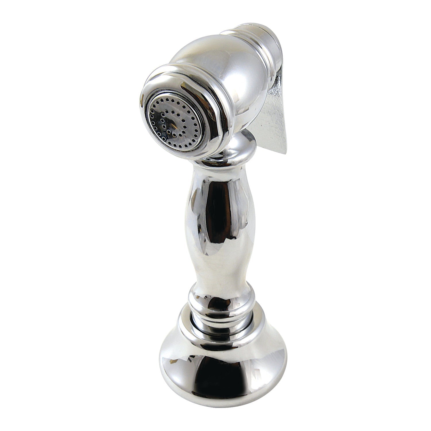 The Kingston Brass Vintage kitchen side spray, constructed of brass, can be used to replace or in select instances upgrade or update your kitchen faucet’s existing side spray. This item can only be used with side spray compatible faucets and should not be installed in alternate configurations. Available in multiple finishes to match your faucet. Includes Includes 60-inch grey PVC hose for durability and cleaning chemical resistance.