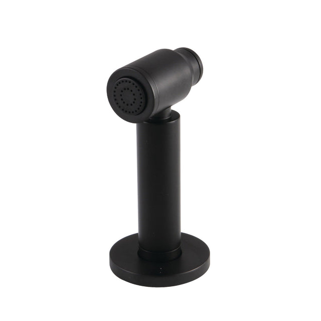 The Kingston Brass Concord kitchen side spray, constructed of brass, can be used to replace or in select instances upgrade or update your kitchen faucets existing side spray. This item can only be used with side spray compatible faucets and should not be installed in alternate configurations. Available in multiple finishes to match your faucet. Includes 60 black hose sheathed in braided nylon for durability and cleaning chemical resistance.