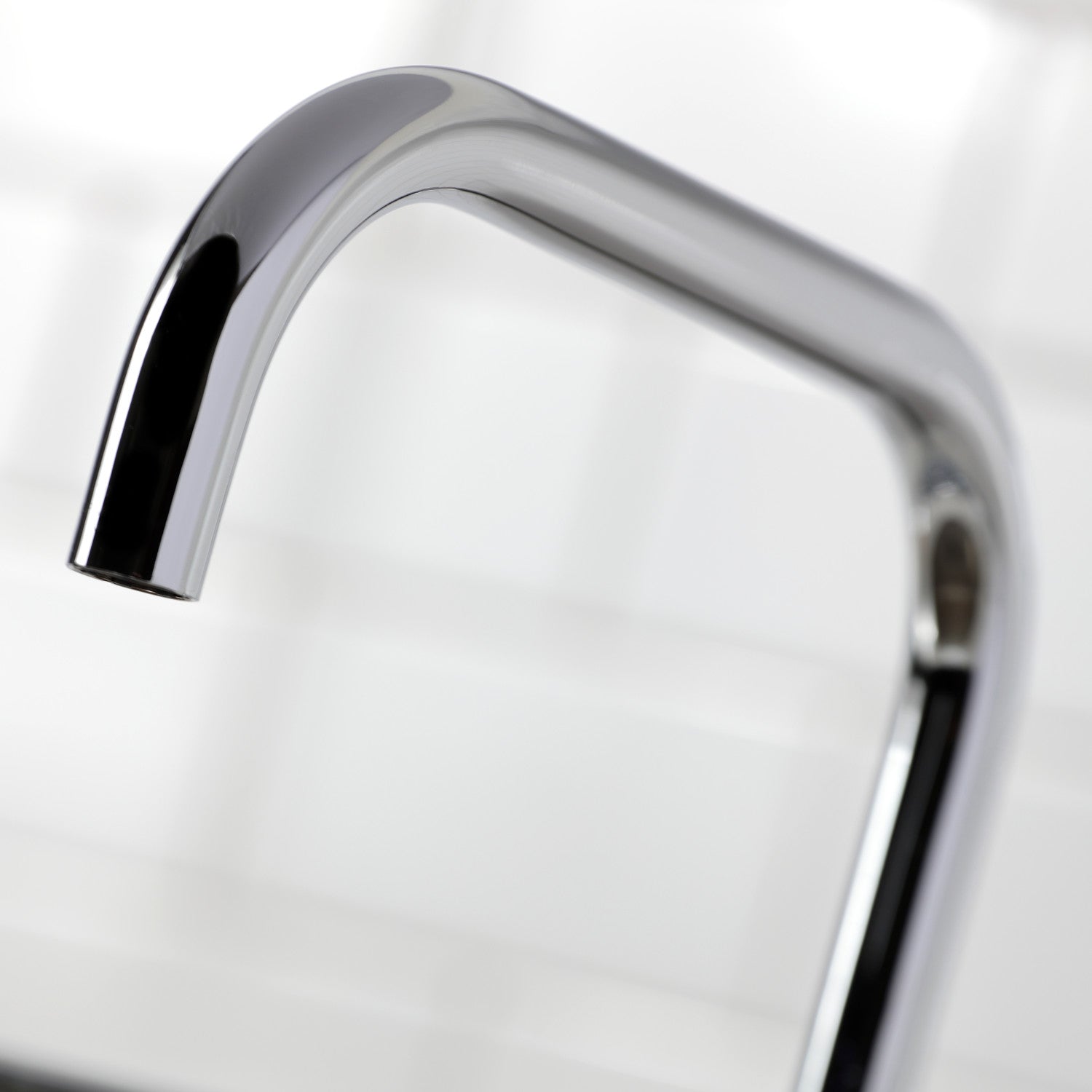 This faucet tastefully interweaves top-notch ergonomic design and the sheen of contemporary simplicity with its tubular high spout, neoprene handles and cylindrical elements. A sturdy brass construction and its durable washerless cartridge make for a reliable and long lasting fixture. Easily adaptable to any style, centerset faucets are known for their ease of installation. Matching accessories are available.