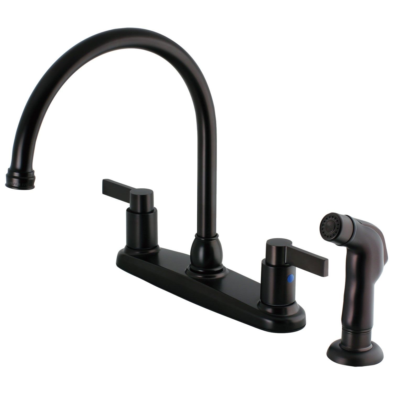 NuvoFusion FB2795NDLSP Two-Handle 4-Hole Deck Mount 8" Centerset Kitchen Faucet with Side Sprayer, Oil Rubbed Bronze