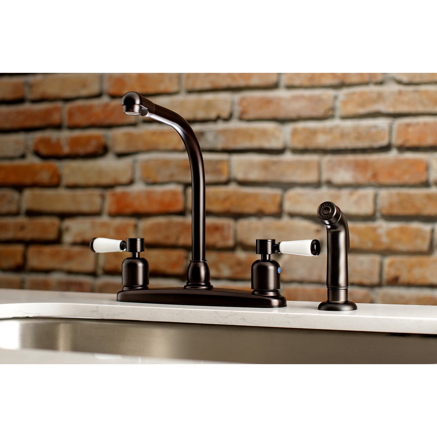 Paris FB755DPLSP Two-Handle 4-Hole Deck Mount 8" Centerset Kitchen Faucet with Side Sprayer, Oil Rubbed Bronze