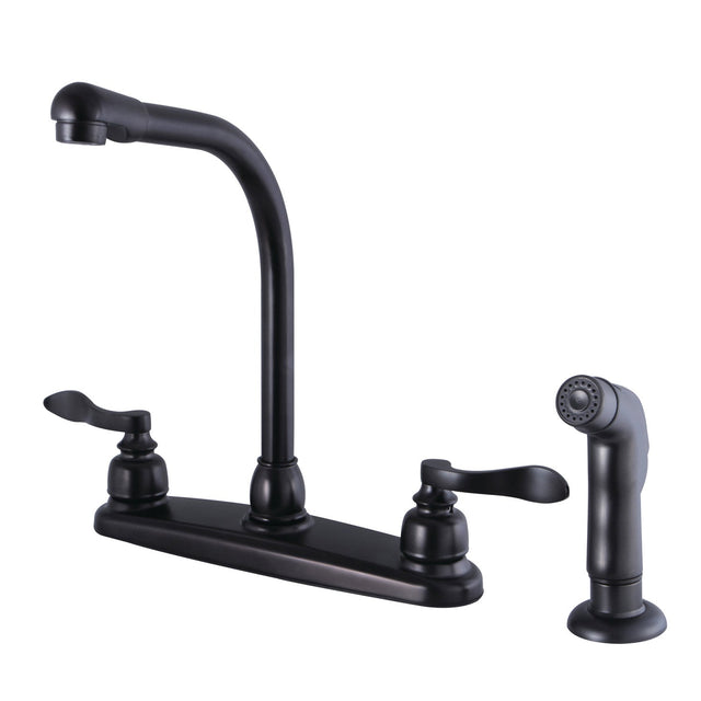 NuWave French FB755NFLSP Two-Handle 4-Hole Deck Mount 8" Centerset Kitchen Faucet with Side Sprayer, Oil Rubbed Bronze