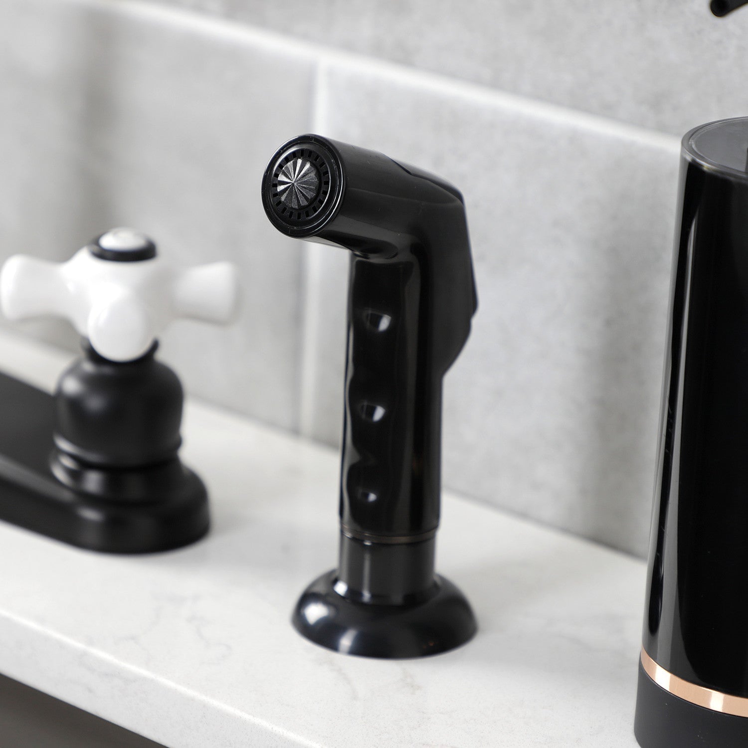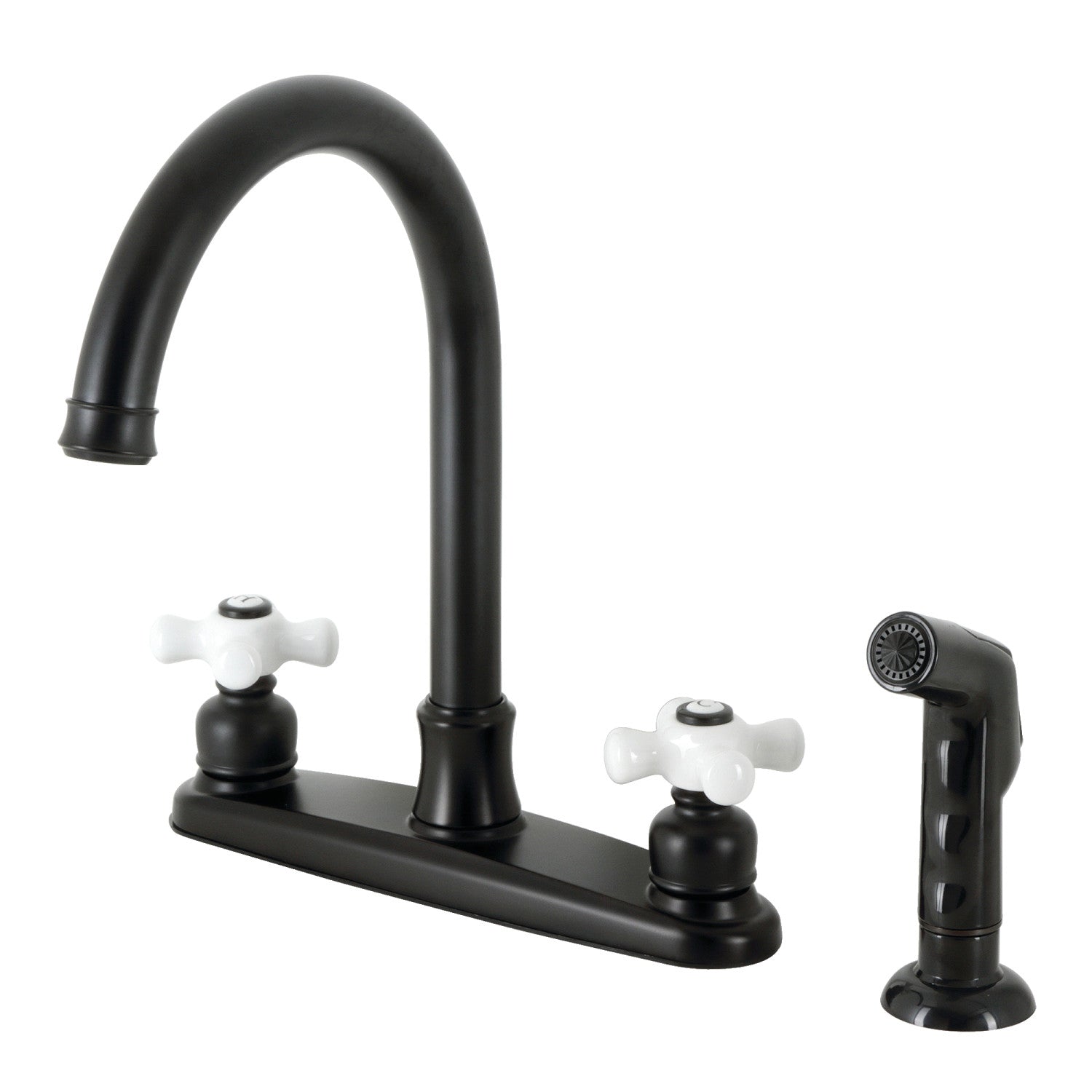 Victorian FB7790PXSP Two-Handle 4-Hole Deck Mount 8" Centerset Kitchen Faucet with Side Sprayer, Matte Black