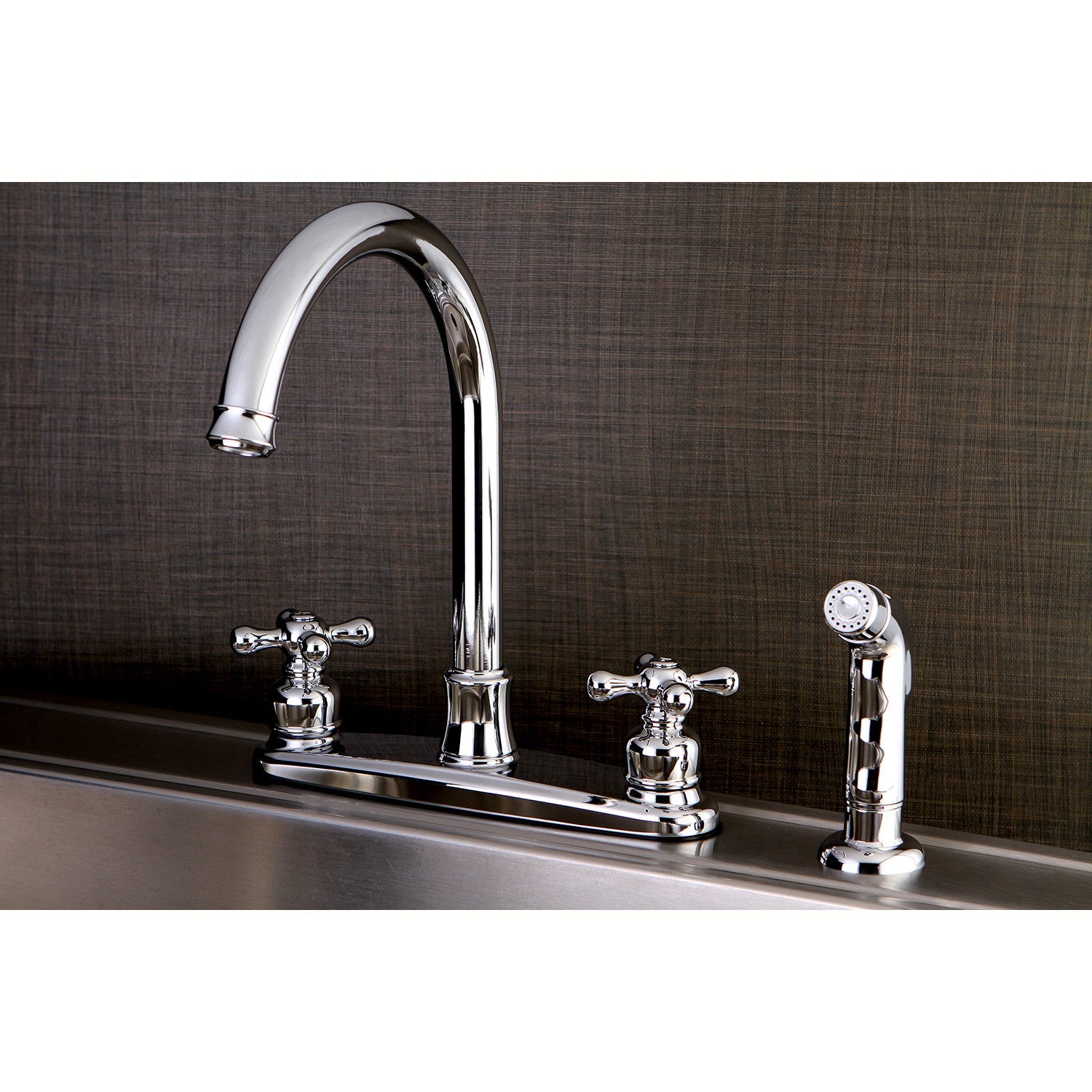 Victorian FB7791AXSP Two-Handle 4-Hole Deck Mount 8" Centerset Kitchen Faucet with Side Sprayer, Polished Chrome
