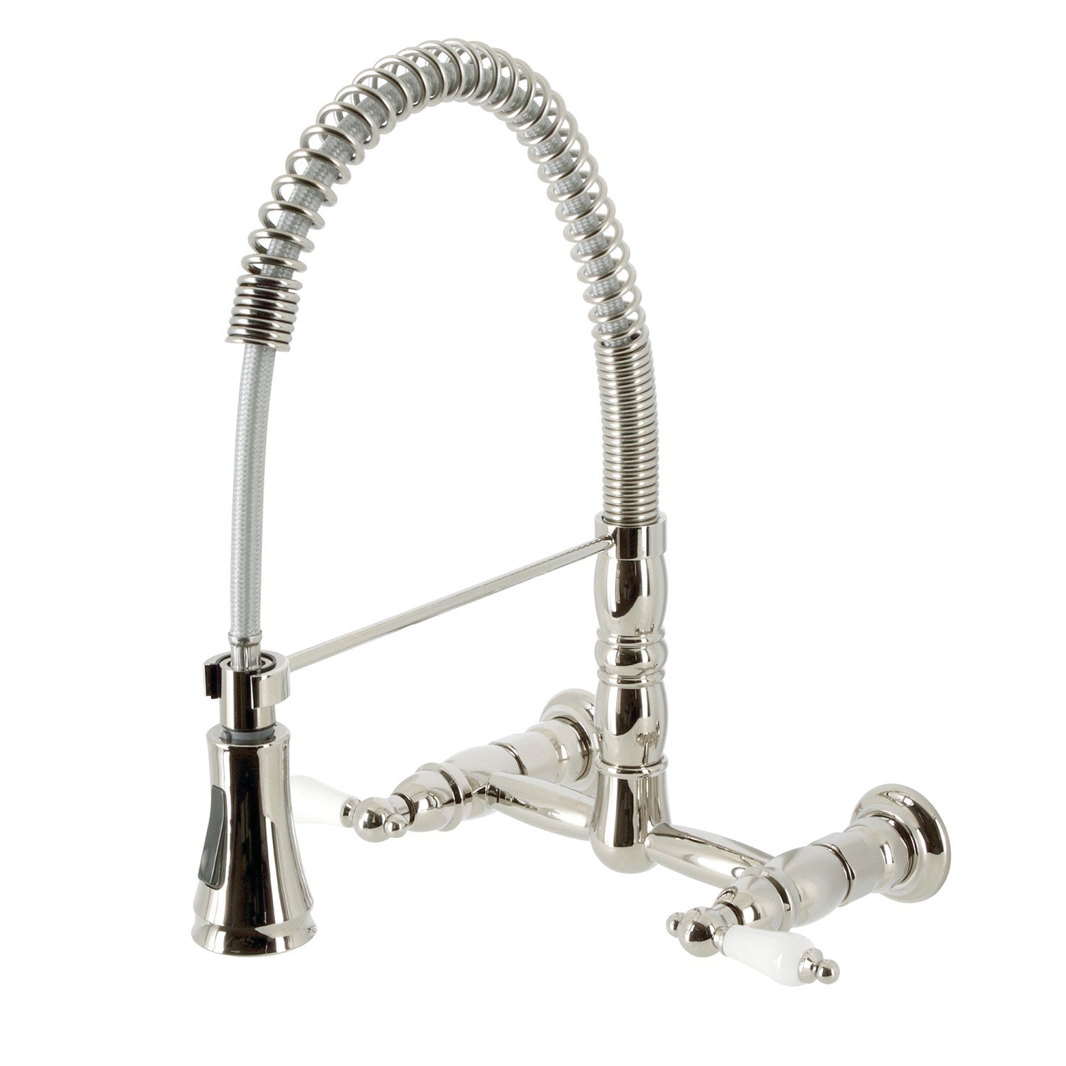 Heritage GS1246PL Wall Mount Pull-Down Sprayer Kitchen Faucet, Polished Nickel