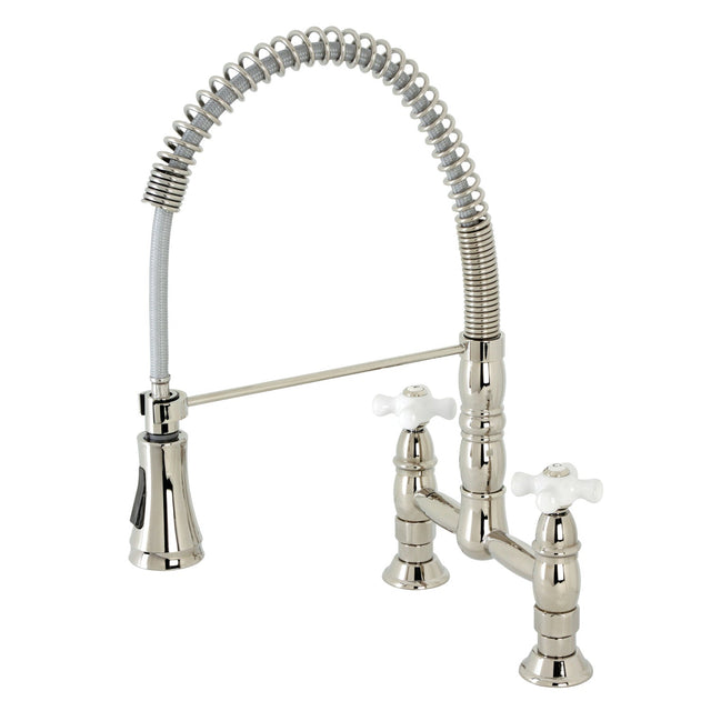 Heritage GS1276PX Two-Handle 2-Hole Deck Mount Pull-Down Sprayer Kitchen Faucet, Polished Nickel