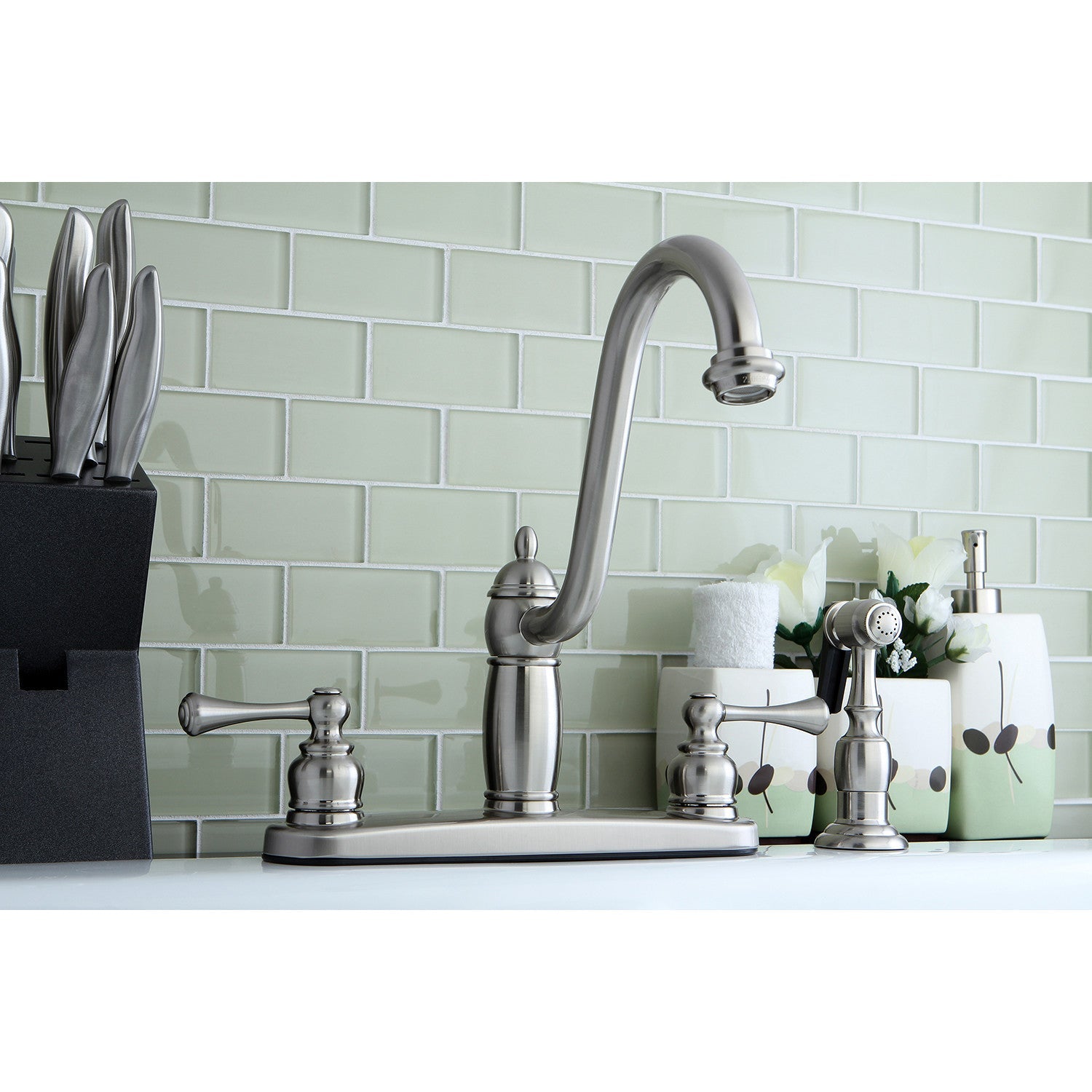 Heritage KB1118BLBS Two-Handle 4-Hole Deck Mount 8" Centerset Kitchen Faucet with Side Sprayer, Brushed Nickel