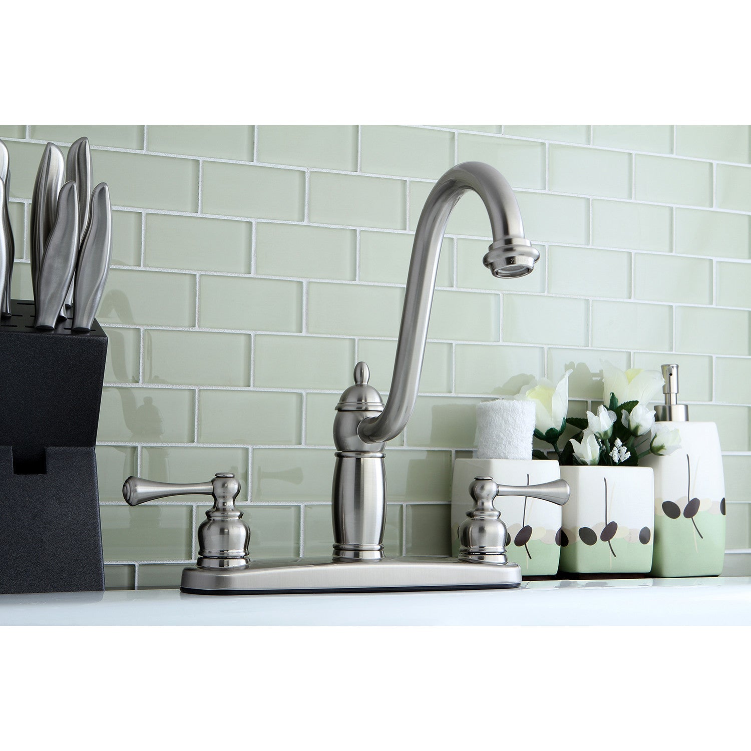 Heritage KB1118BLLS Two-Handle 3-Hole Deck Mount 8" Centerset Kitchen Faucet, Brushed Nickel