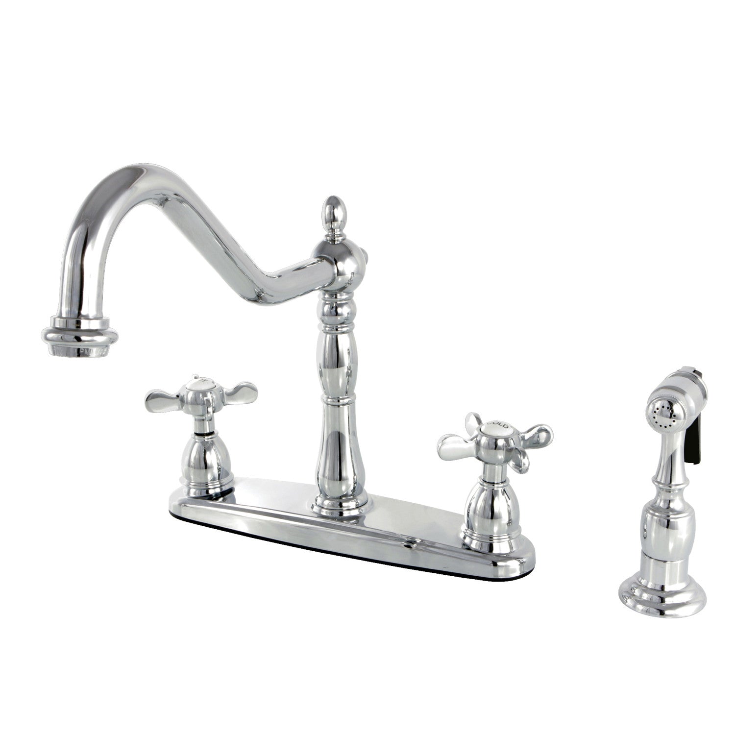Essex KB1751BEXBS Two-Handle 4-Hole Deck Mount 8" Centerset Kitchen Faucet with Side Sprayer, Polished Chrome