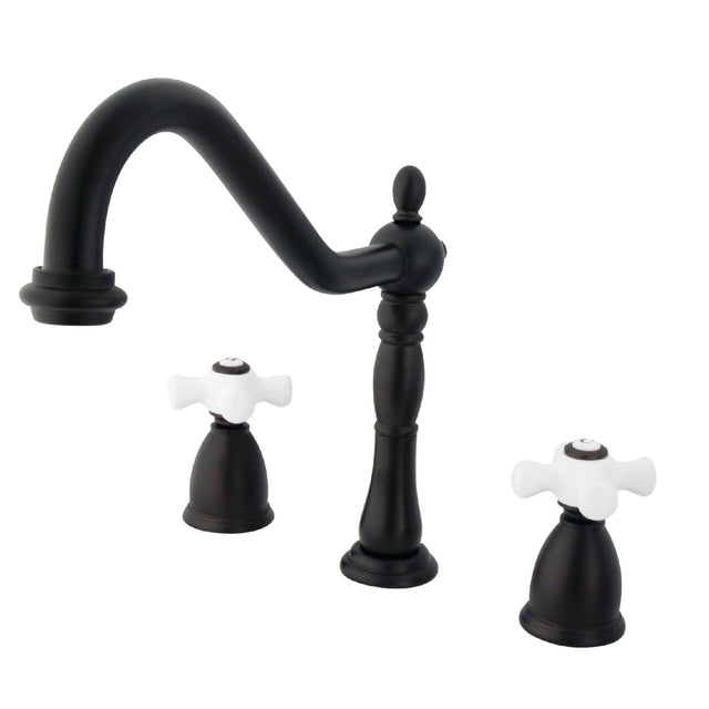 Heritage KB1795PXLS Two-Handle 3-Hole Deck Mount Widespread Kitchen Faucet, Oil Rubbed Bronze