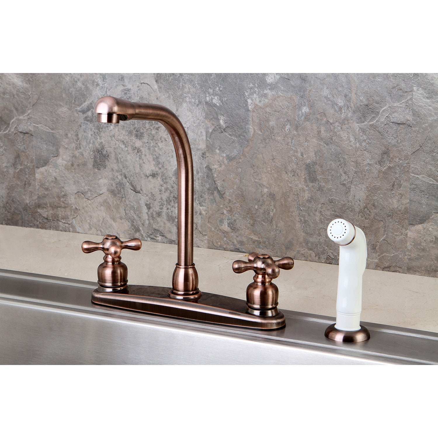 Victorian KB716AX Two-Handle 4-Hole Deck Mount 8" Centerset Kitchen Faucet with Side Sprayer, Antique Copper