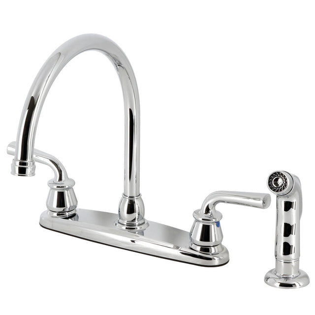 Restoration KB721RXLSP Two-Handle 4-Hole Deck Mount 8" Centerset Kitchen Faucet with Side Sprayer, Polished Chrome