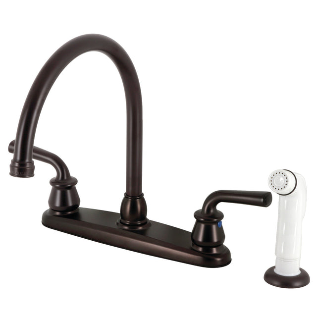 Restoration KB725RXL Two-Handle 4-Hole Deck Mount 8" Centerset Kitchen Faucet with White Sprayer, Oil Rubbed Bronze
