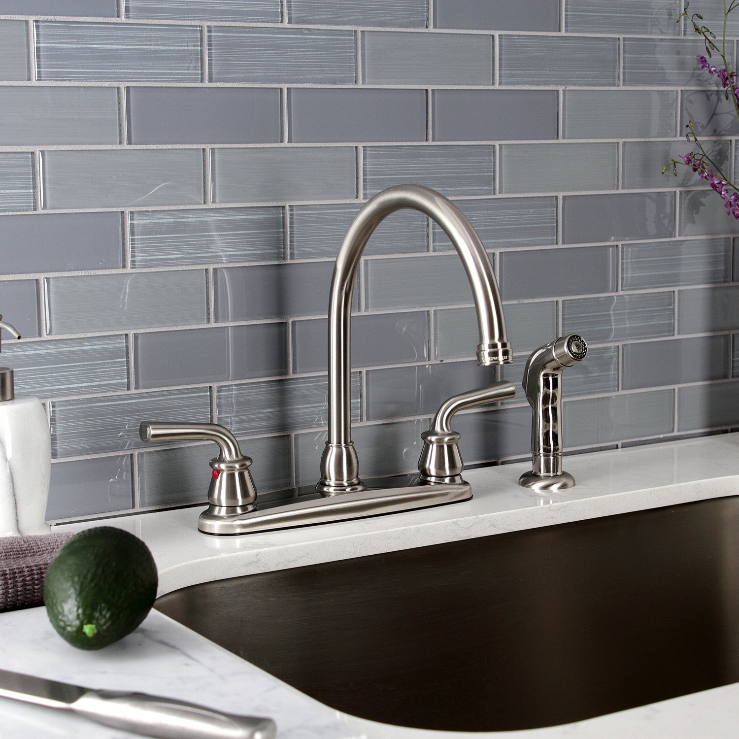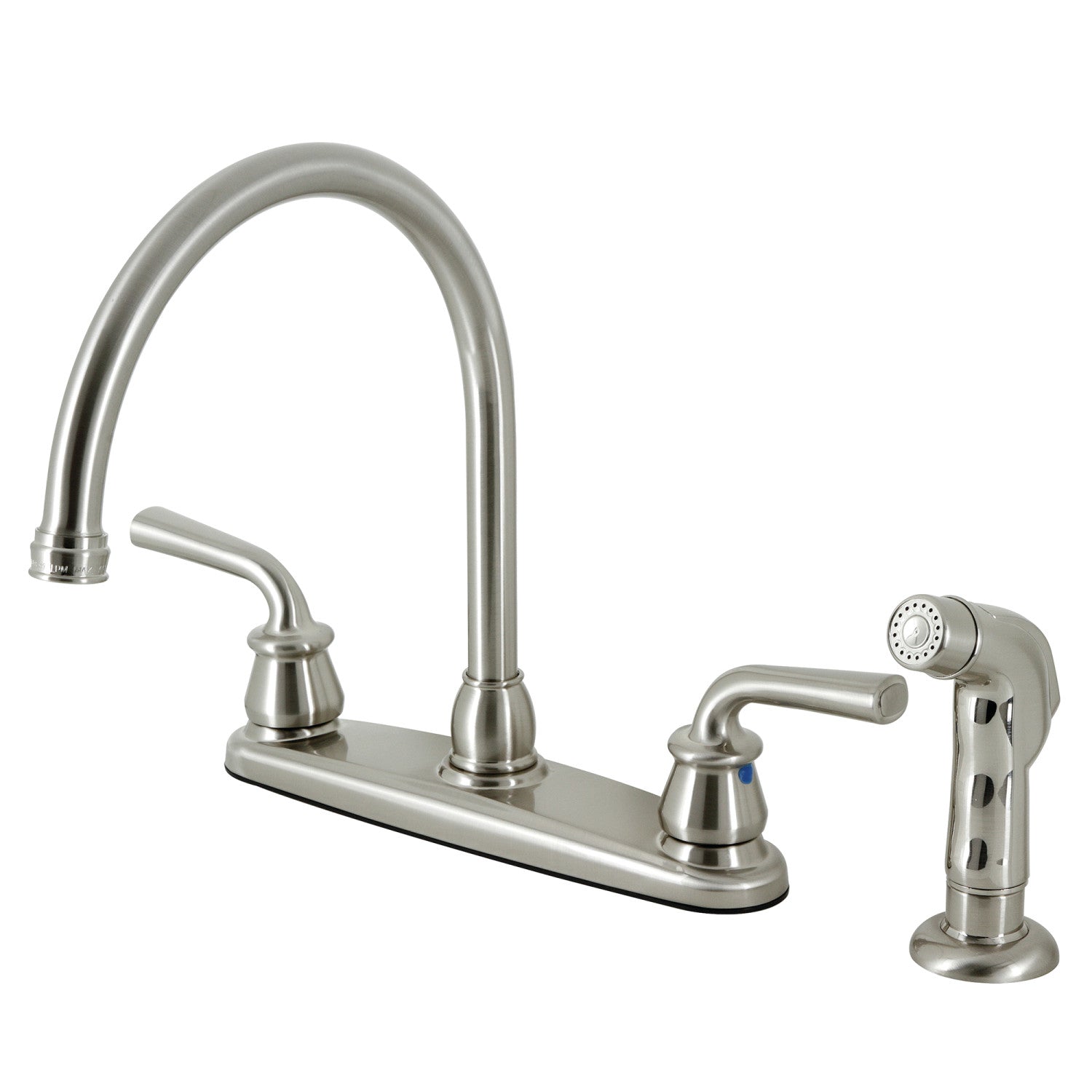 Restoration KB728RXLSP Two-Handle 4-Hole Deck Mount 8" Centerset Kitchen Faucet with Side Sprayer, Brushed Nickel