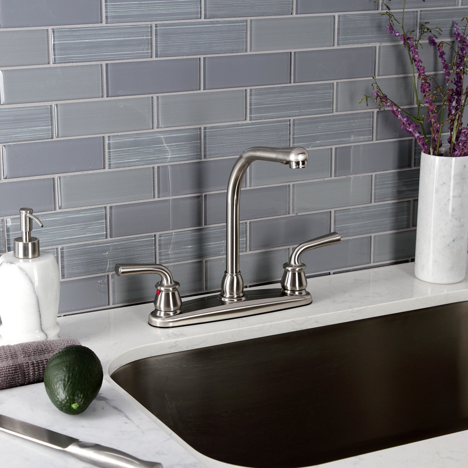Restoration KB758RXLLS Two-Handle 2-Hole Deck Mount 8" Centerset Kitchen Faucet, Brushed Nickel