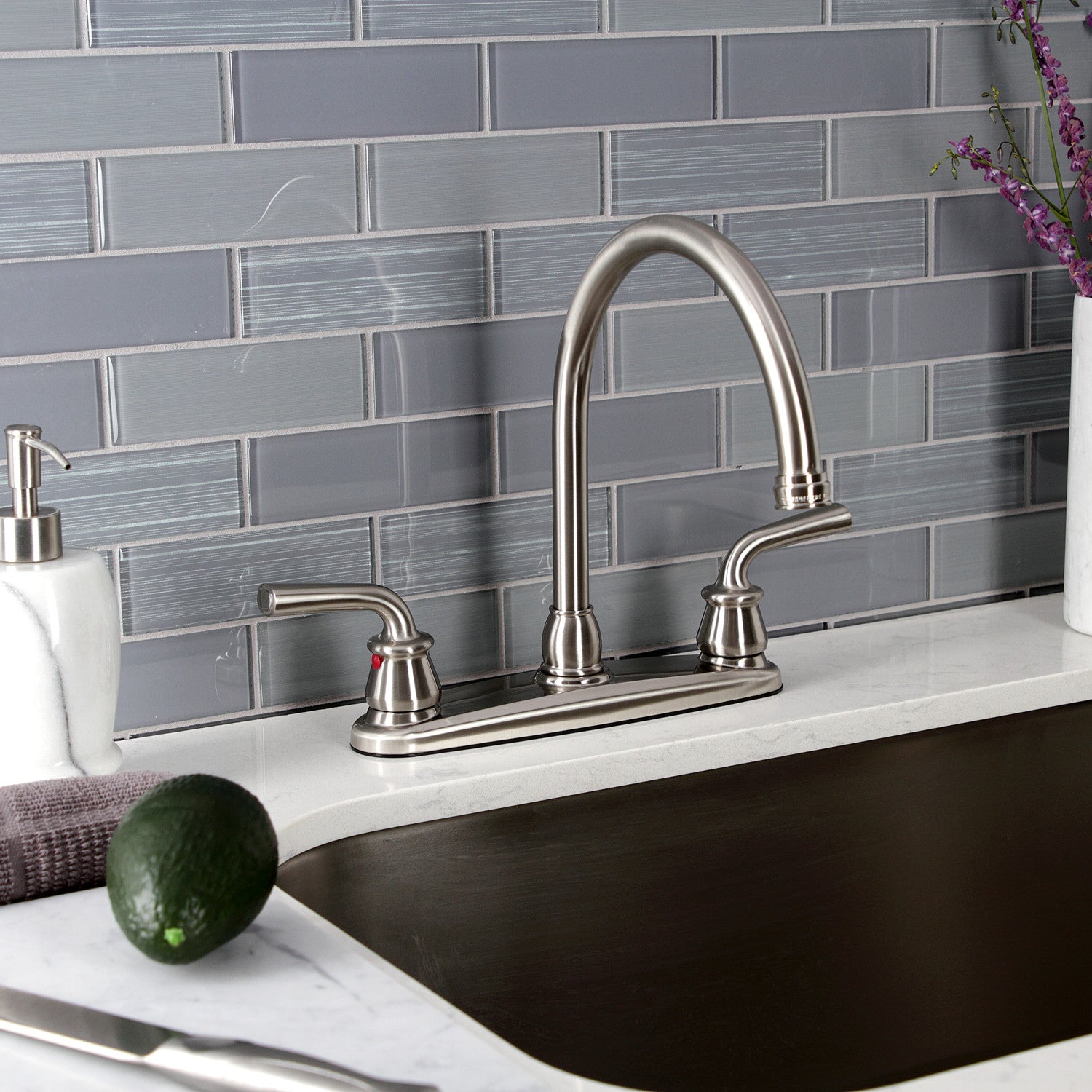 Restoration KB798RXLLS Two-Handle 2-Hole Deck Mount 8" Centerset Kitchen Faucet, Brushed Nickel
