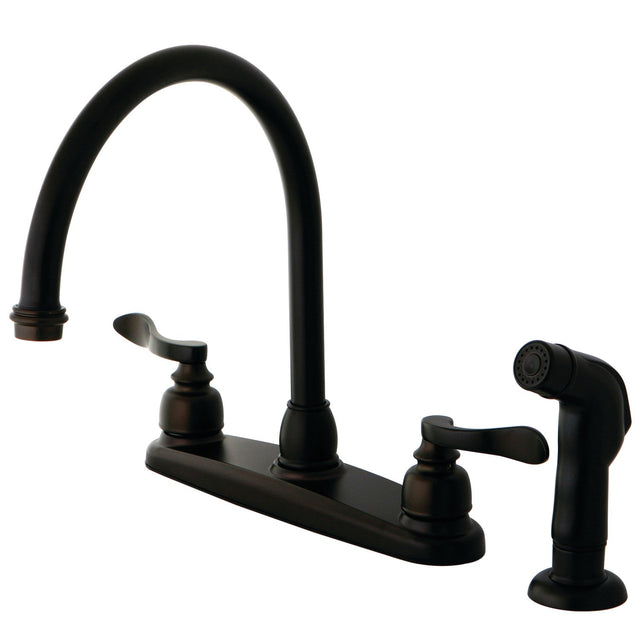 NuWave French KB8795NFLSP Two-Handle 4-Hole Deck Mount 8" Centerset Kitchen Faucet with Side Sprayer, Oil Rubbed Bronze