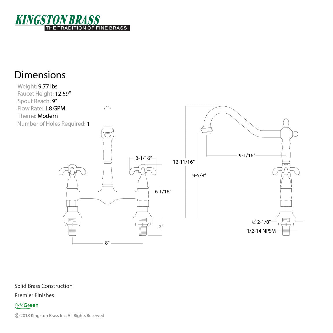 - 1.8 GPM/6.8 LPM spout flow rate at 60 PSI