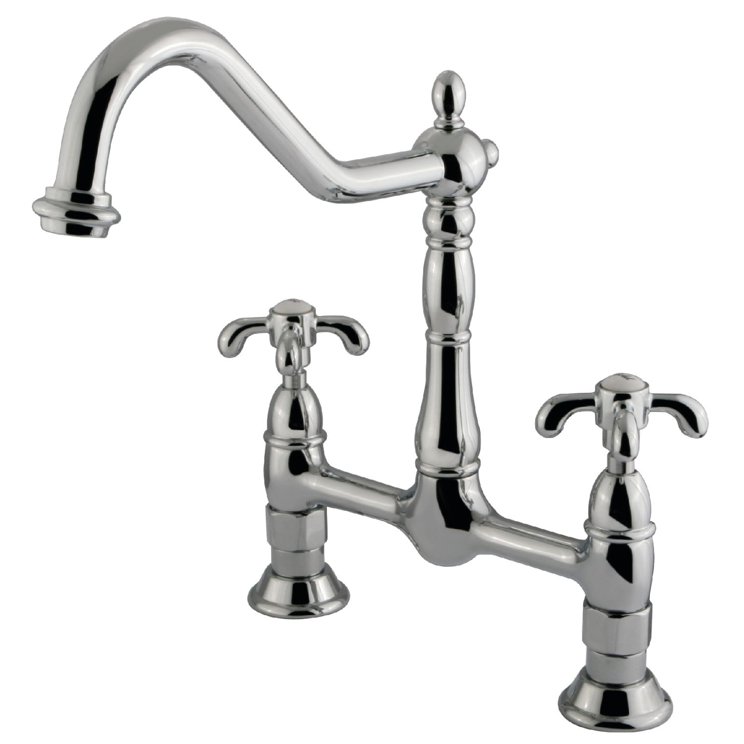 French Country KS1171TX Two-Handle 2-Hole Deck Mount Bridge Kitchen Faucet, Polished Chrome
