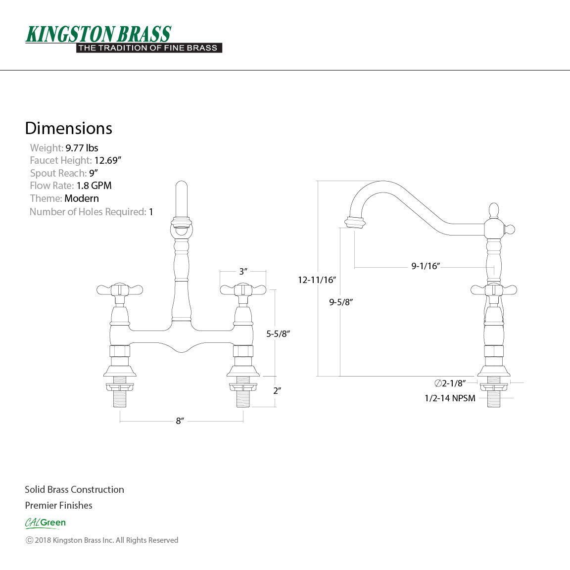 - 1.8 GPM/6.8 LPM spout flow rate at 60 PSI
