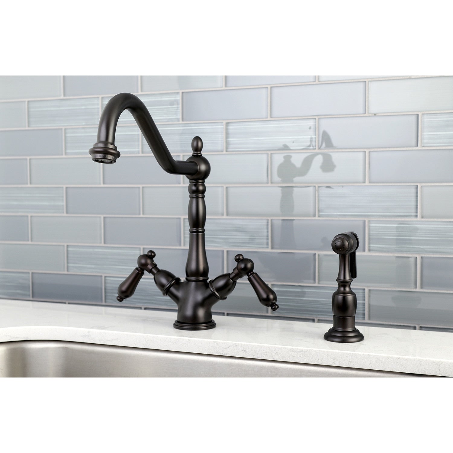 Heritage KS1235ALBS Two-Handle 2-or-4 Hole Deck Mount Kitchen Faucet with Brass Sprayer, Oil Rubbed Bronze