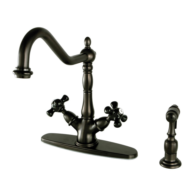 Duchess KS1235PKXBS Two-Handle 2-or-4 Hole Deck Mount Kitchen Faucet with Brass Sprayer, Oil Rubbed Bronze