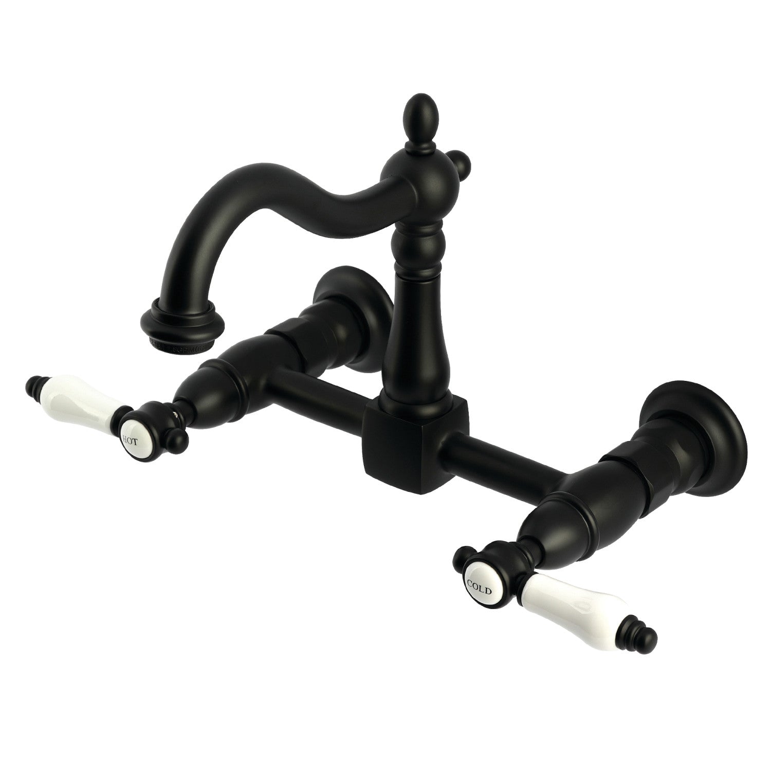 Bel-Air KS1260BPL Two-Handle 2-Hole Wall Mount Kitchen Faucet, Matte Black