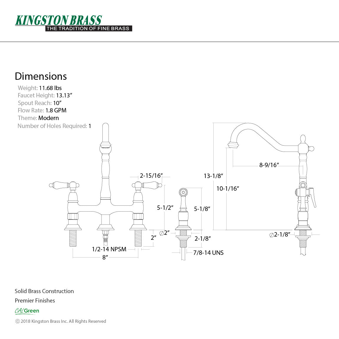 • 1.8 GPM/6.8 LPM spout flow rate at 60 PSI