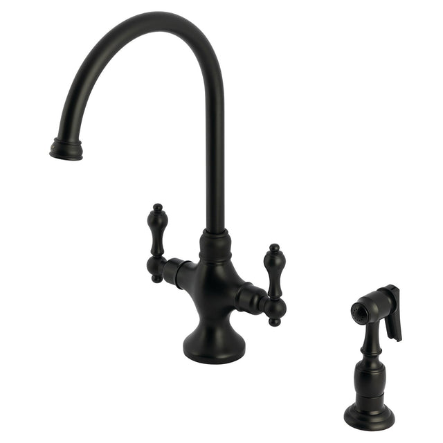 Vintage KS1760ALBS Two-Handle 2-Hole Deck Mount Kitchen Faucet with Brass Sprayer, Matte Black