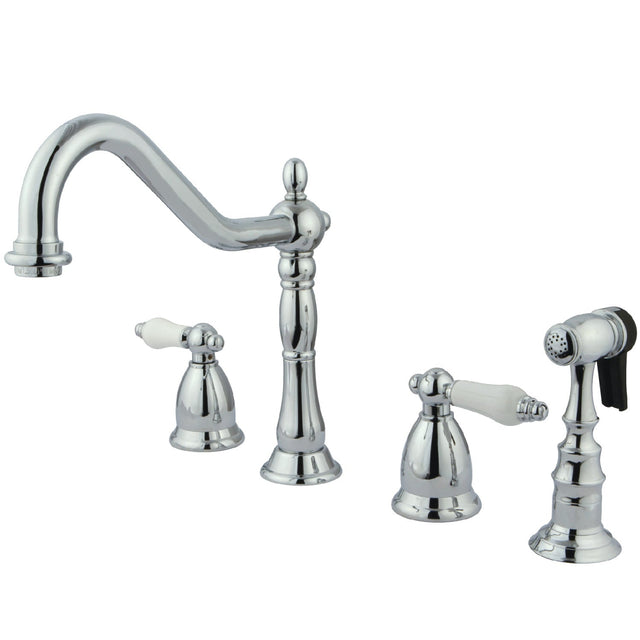 Heritage KS1791PLBS Two-Handle 4-Hole Deck Mount Widespread Kitchen Faucet with Brass Sprayer, Polished Chrome