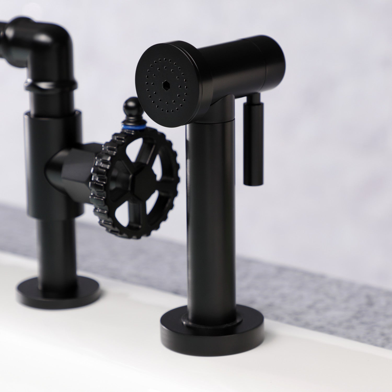 Fuller KS2330CG Two-Handle 4-Hole Deck Mount Bridge Kitchen Faucet with Brass Sprayer, Matte Black