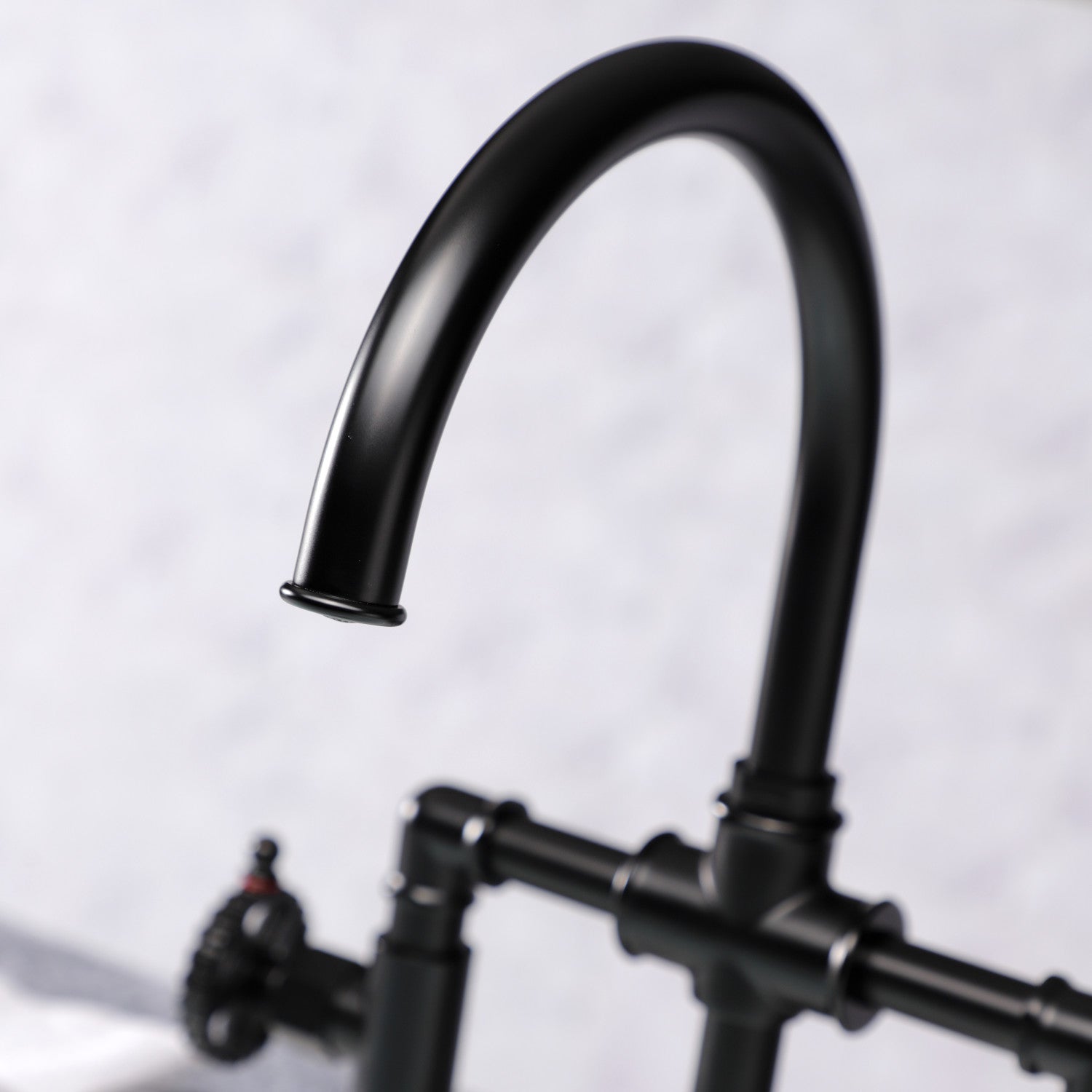This faucet's modern features create a bold and edgy design in your kitchen. While bridge faucets typically have a traditional appeal, this particular design is a more modern interpretation. Allow the matte black finish to pop against your surrounding kitchen decor due to the added architectural elements. The brass construction and swivel abilities provide a sturdy and reliant fixture, great for both dual and single bowl sinks. Utilize the included matching finish side-sprayer for convenience in cleaning hard-to-reach areas.