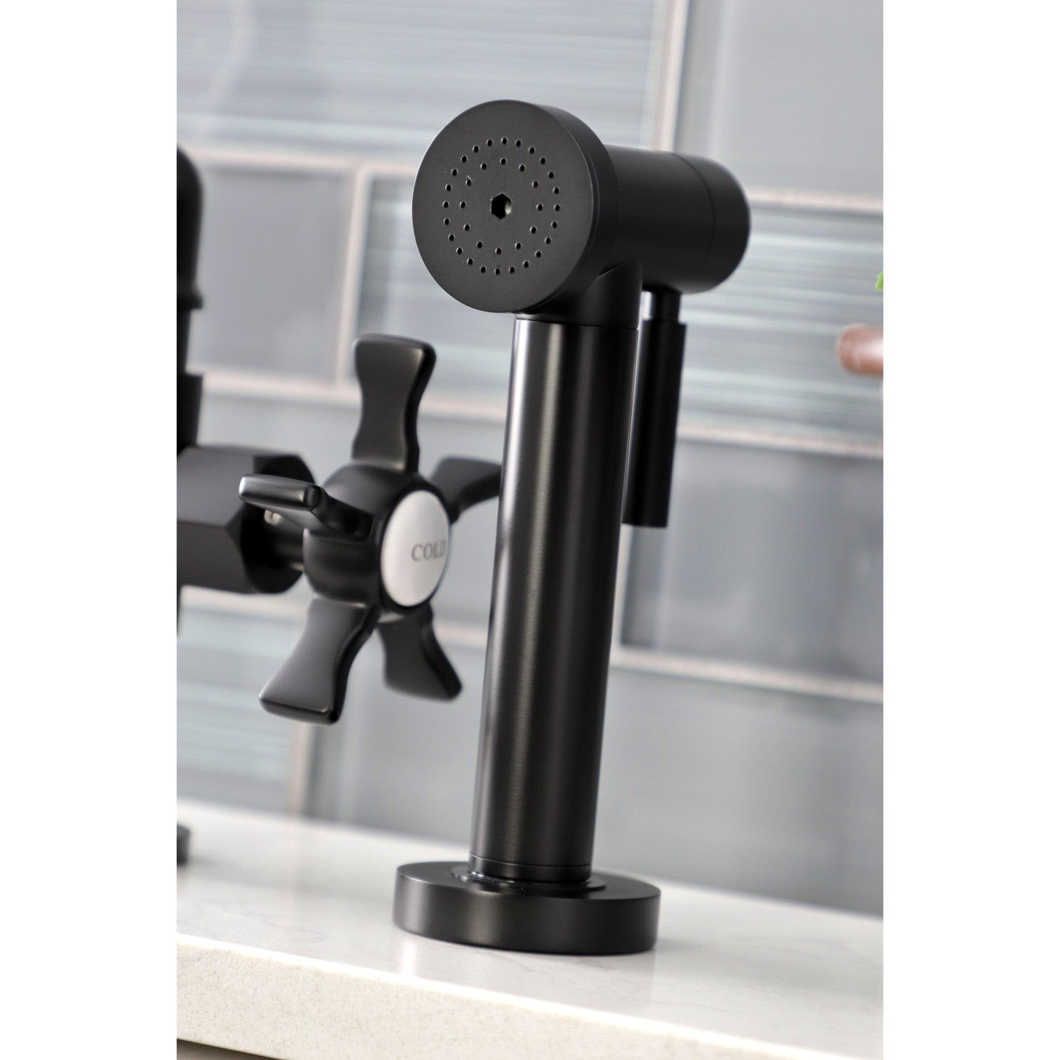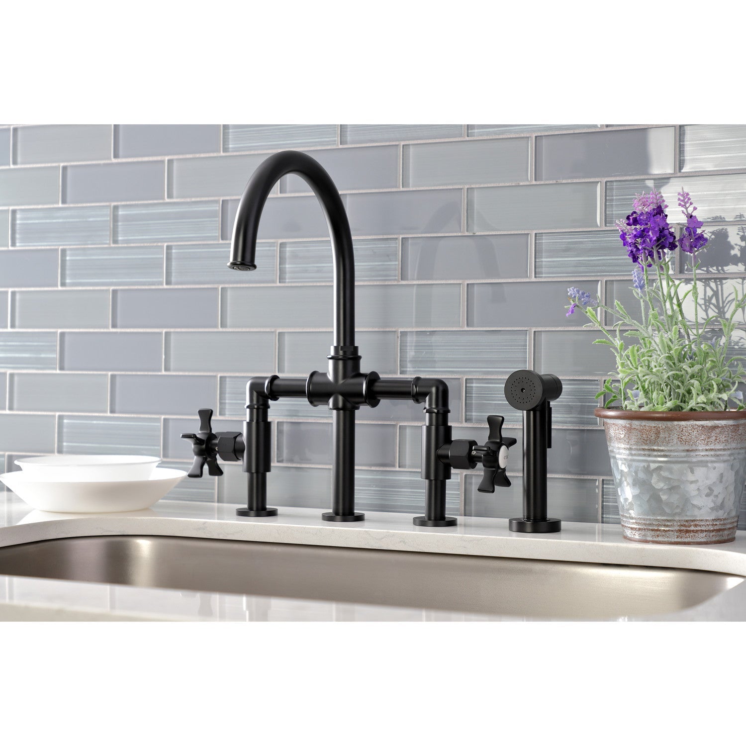 Hamilton KS2330NX Two-Handle 4-Hole Deck Mount Bridge Kitchen Faucet with Brass Sprayer, Matte Black