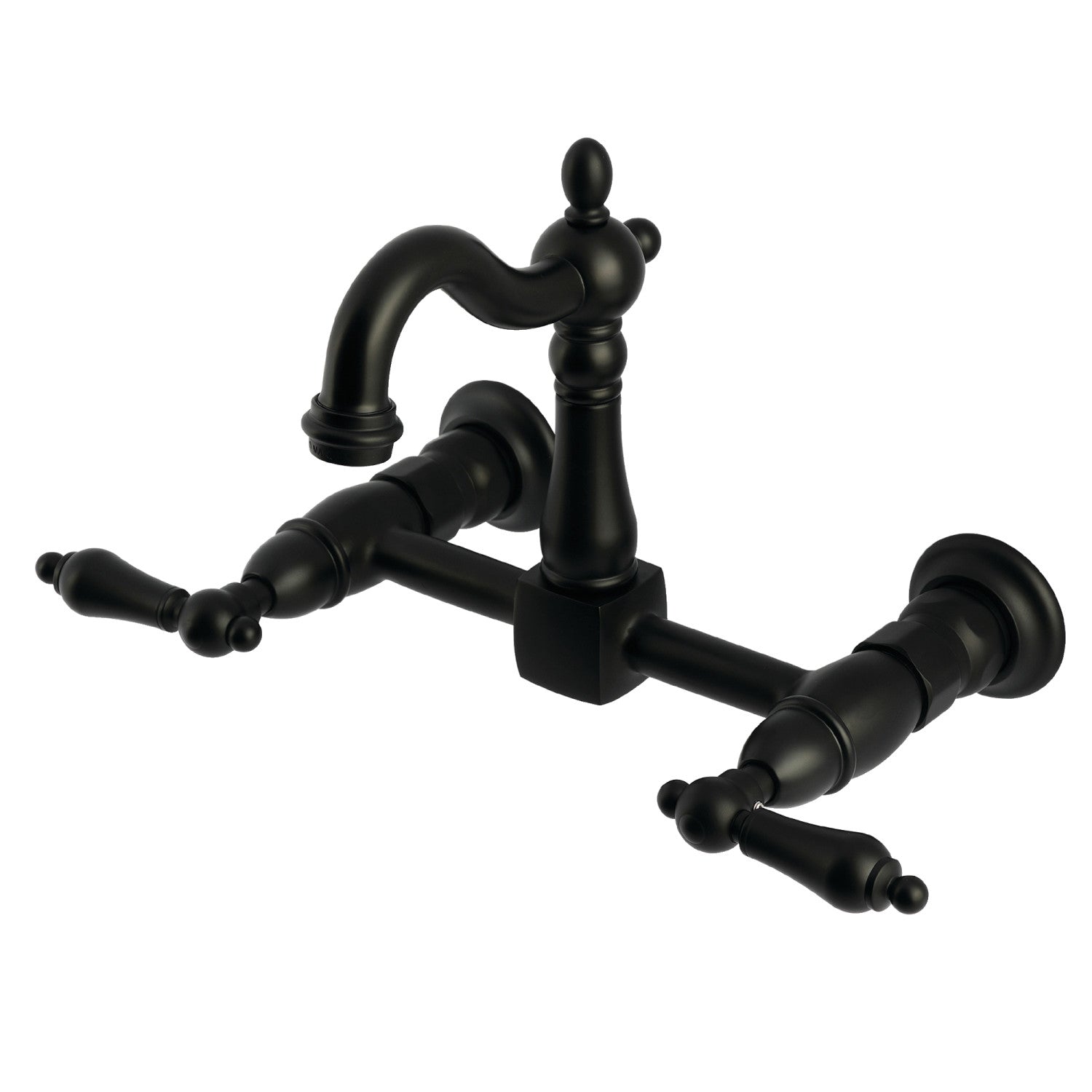 Heritage KS2440AL Two-Handle 2-Hole Wall Mount Kitchen Faucet, Matte Black