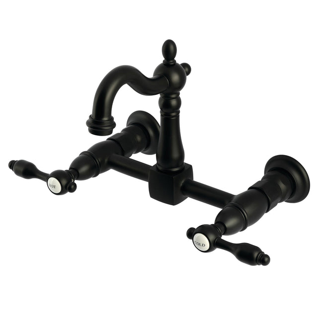 Tudor KS2440TAL Two-Handle 2-Hole Wall Mount Kitchen Faucet, Matte Black