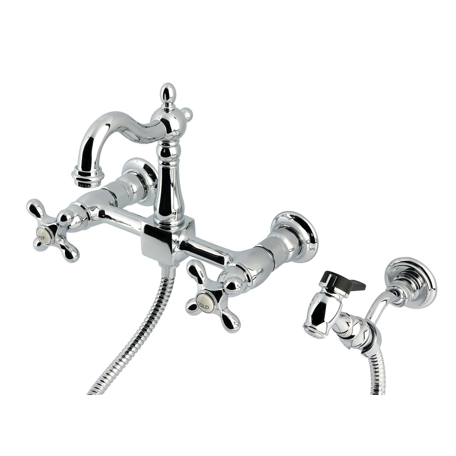 Heritage KS2441AXBS Two-Handle 3-Hole Wall Mount Kitchen Faucet, Polished Chrome