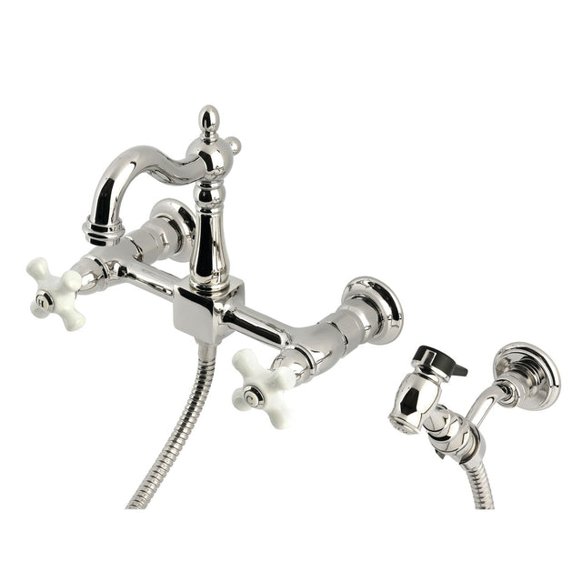 Heritage KS2446PXBS Two-Handle 3-Hole Wall Mount Kitchen Faucet, Polished Nickel