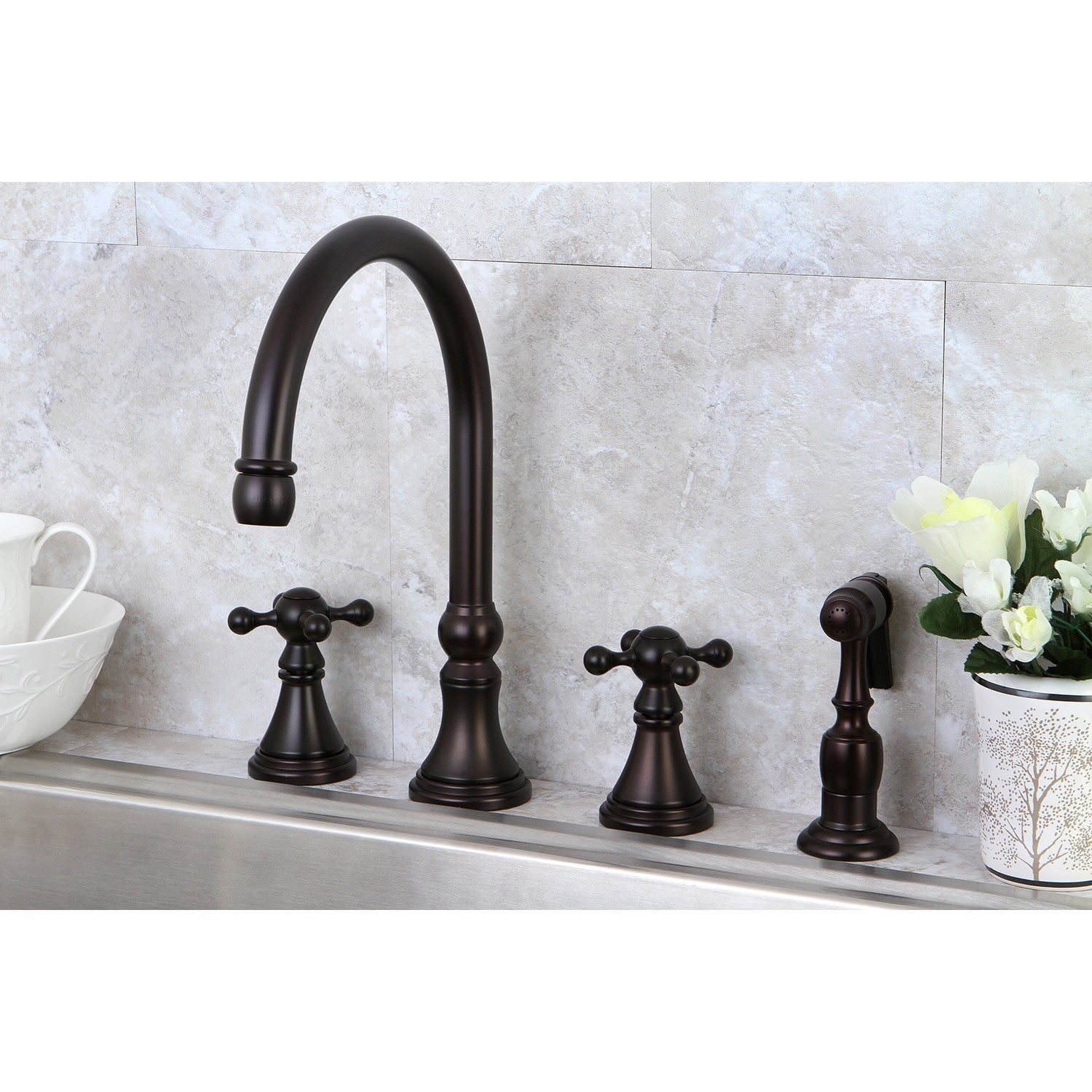 Governor KS2795KXBS Two-Handle 4-Hole Deck Mount Widespread Kitchen Faucet with Brass Sprayer, Oil Rubbed Bronze