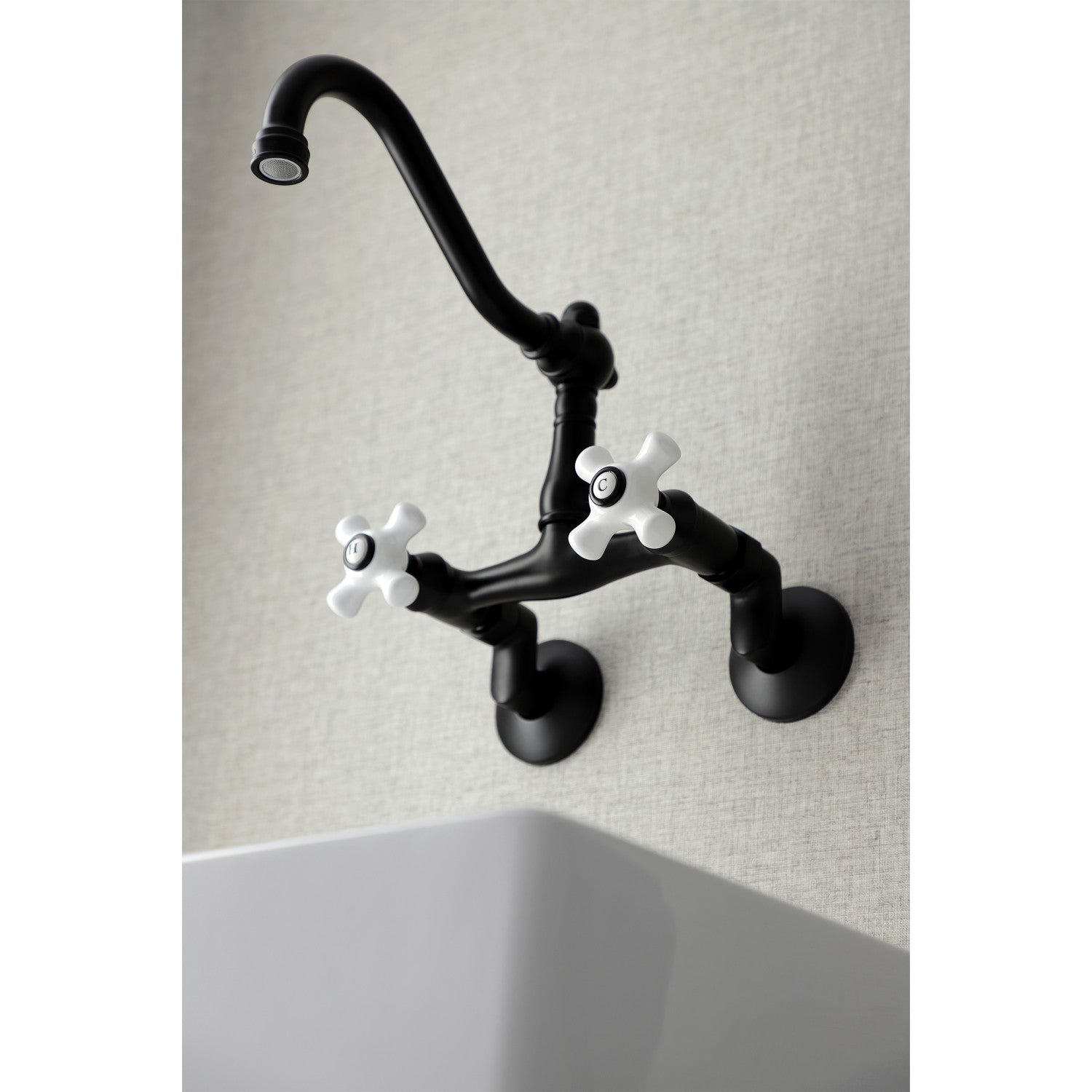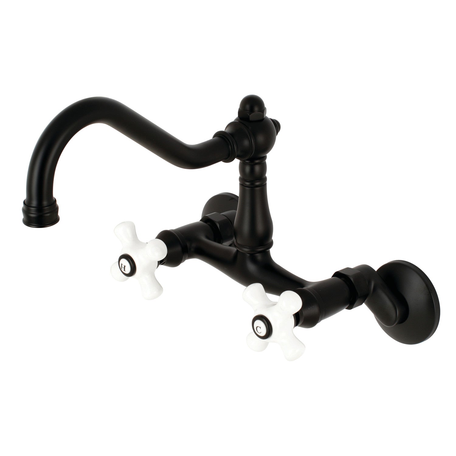 Vintage KS3220PX Two-Handle 2-Hole Wall Mount Kitchen Faucet, Matte Black