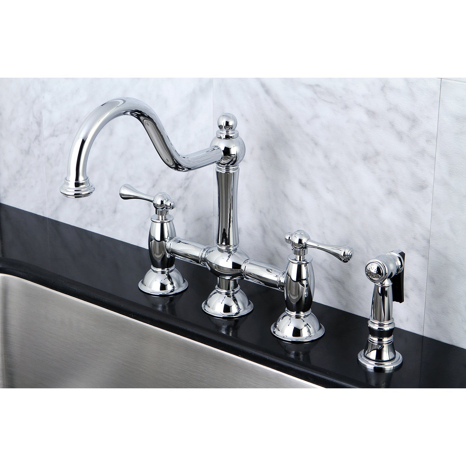 Restoration KS3791BLBS Two-Handle 4-Hole Deck Mount Bridge Kitchen Faucet with Brass Sprayer, Polished Chrome