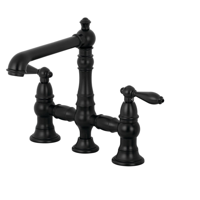 English Country KS7270ALBS Two-Handle 4-Hole Deck Mount Bridge Kitchen Faucet with Side Sprayer, Matte Black