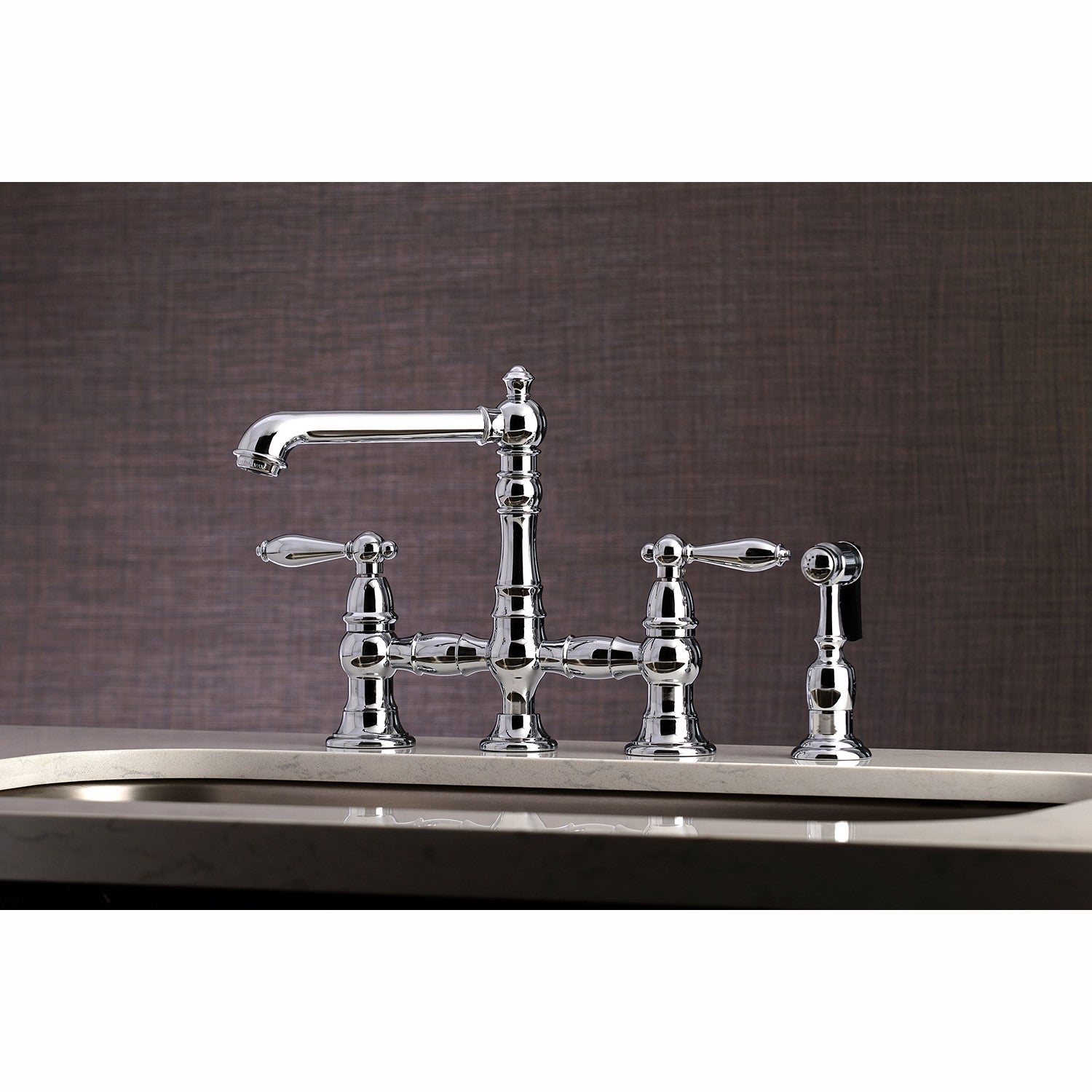 English Country KS7271ALBS Two-Handle 4-Hole Deck Mount Bridge Kitchen Faucet with Side Sprayer, Polished Chrome