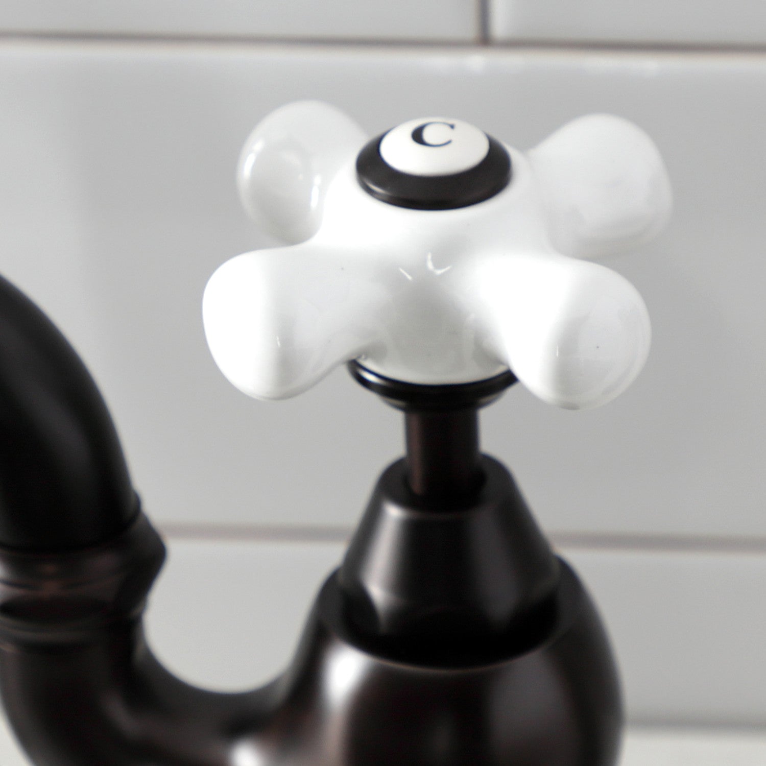 English Country KS7755PXBS Two-Handle 3-Hole Deck Mount Bridge Kitchen Faucet with Brass Sprayer, Oil Rubbed Bronze