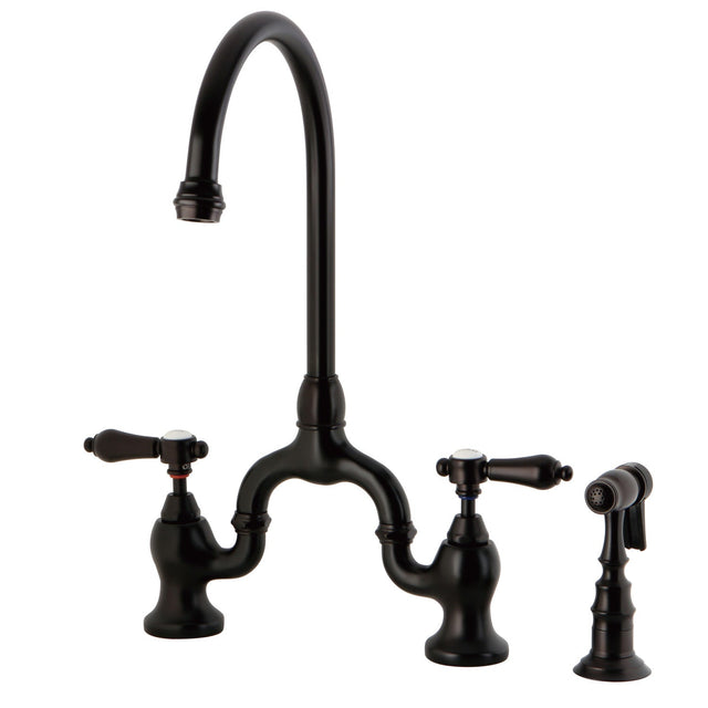 Heirloom KS7795BALBS Two-Handle 3-Hole Deck Mount Bridge Kitchen Faucet with Brass Sprayer, Oil Rubbed Bronze