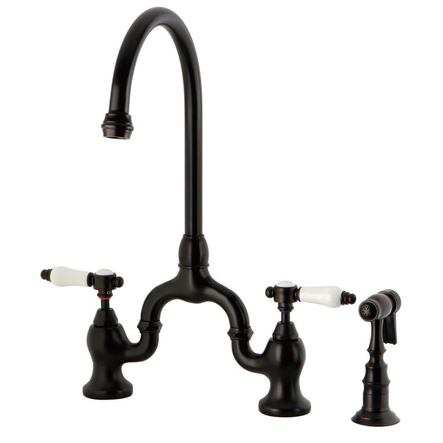 Bel-Air KS7795BPLBS Two-Handle 3-Hole Deck Mount Bridge Kitchen Faucet with Brass Sprayer, Oil Rubbed Bronze