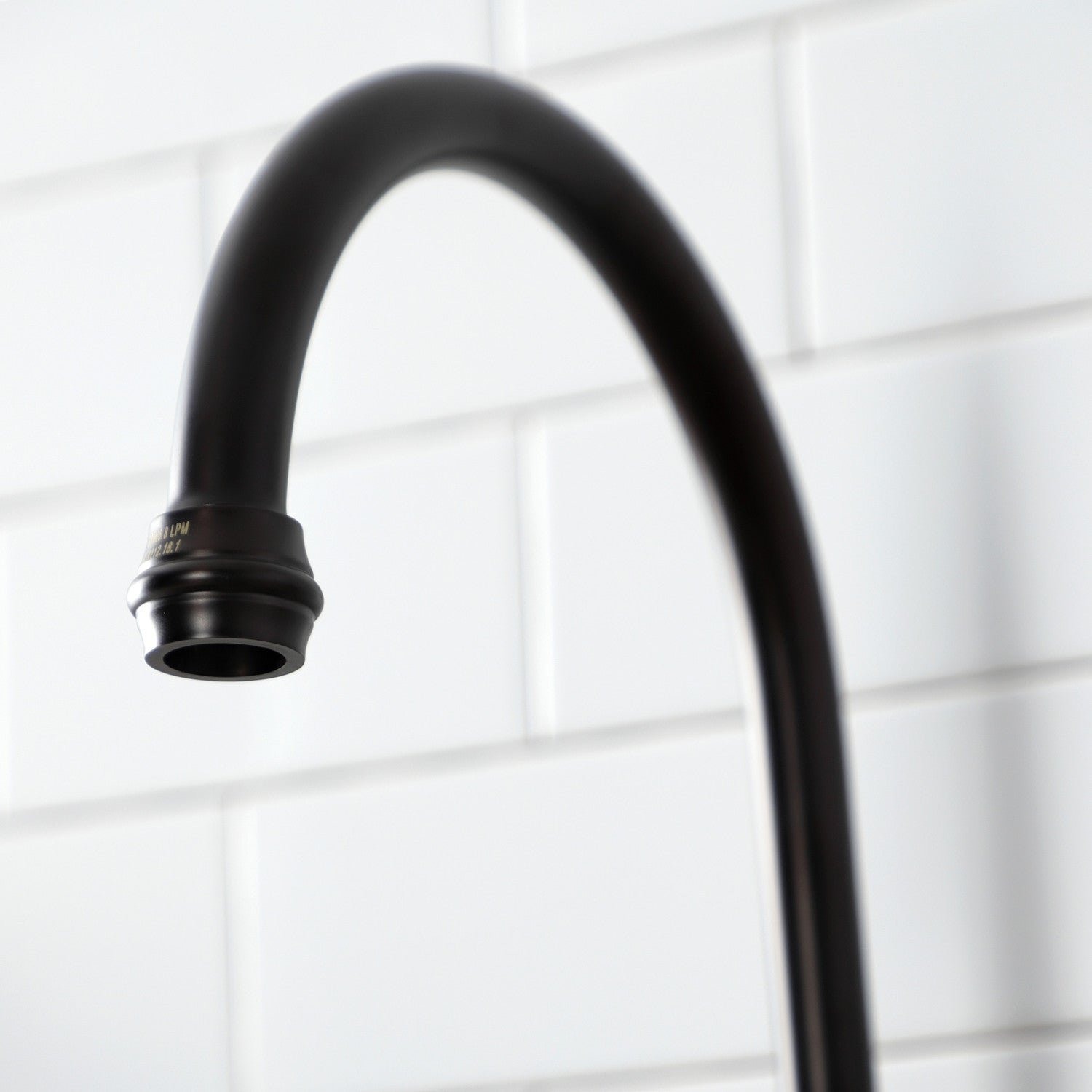 Embody the extravagance of 18th century Europe by adorning your house with the traditional elegance offered by this faucet. Whether you are striving for a Victorian-inspired kitchen or a vibrant 1950s-themed space, the unique bridge design is a highly favored option amongst those doing period-style kitchens. Because of its added architectural elements and detailing, the oil rubbed bronze finish will pop against your surrounding kitchen decor. Allow the brass construction, side sprayer, and swivel abilities to provide a sturdy and reliant fixture, great for use with any sink.