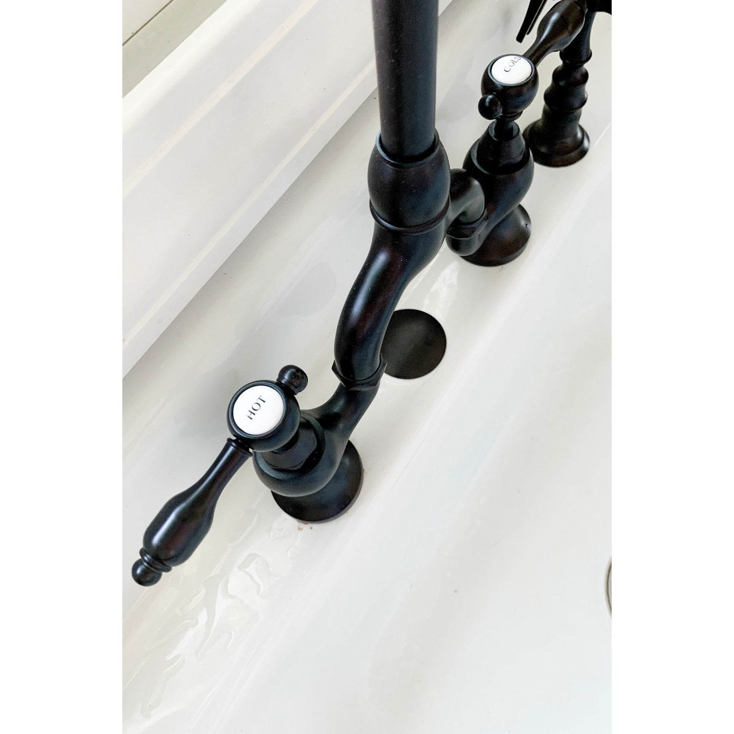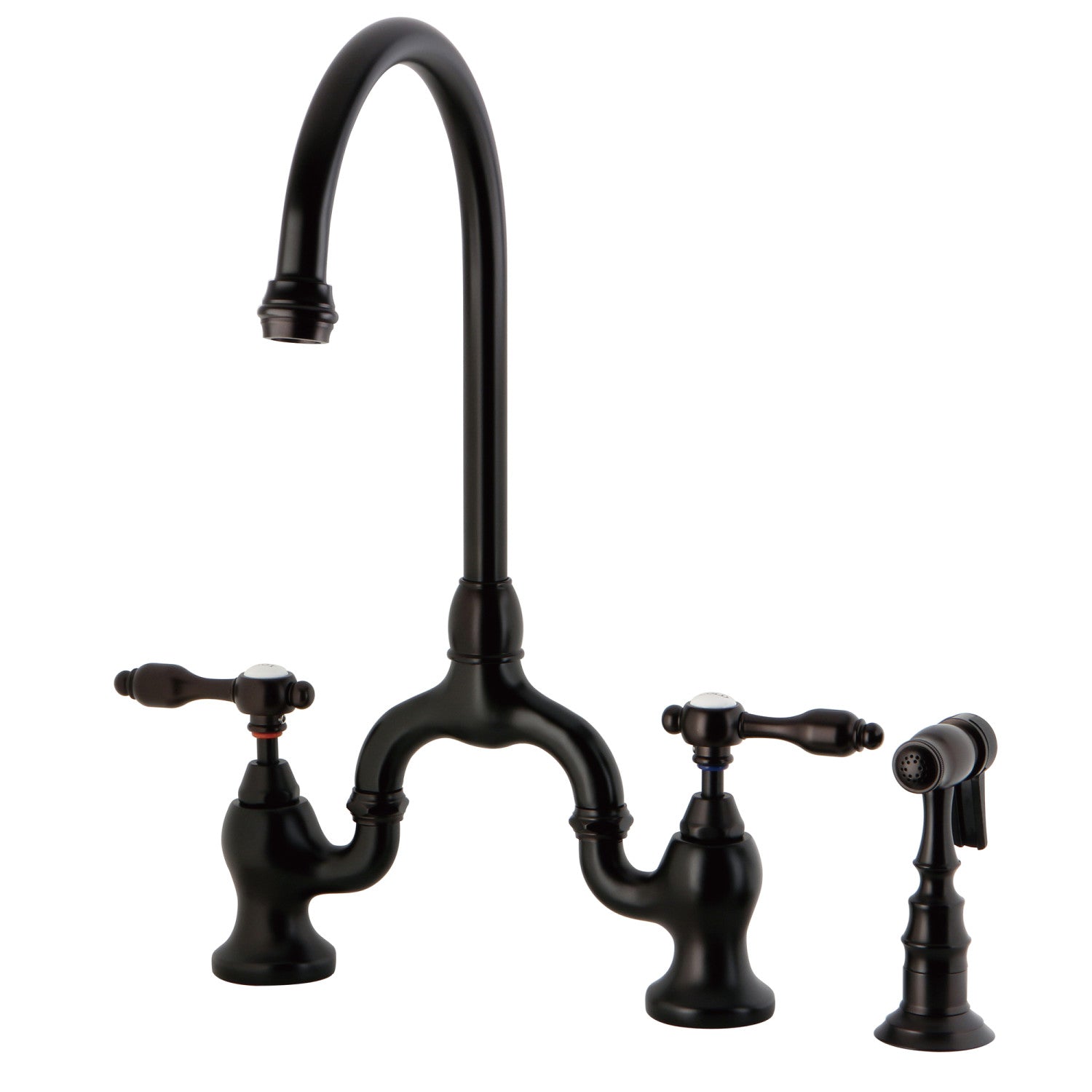 Tudor KS7795TALBS Two-Handle 3-Hole Deck Mount Bridge Kitchen Faucet with Brass Sprayer, Oil Rubbed Bronze