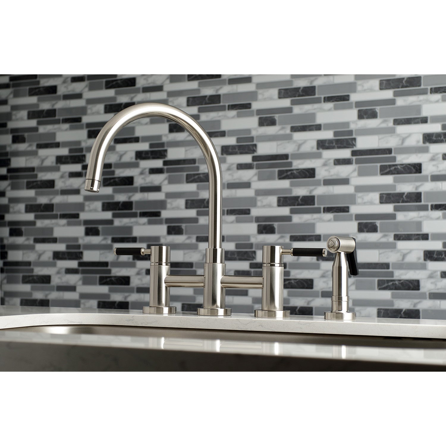 Kaiser KS8278DKLBS Two-Handle 4-Hole Deck Mount Bridge Kitchen Faucet with Brass Sprayer, Brushed Nickel