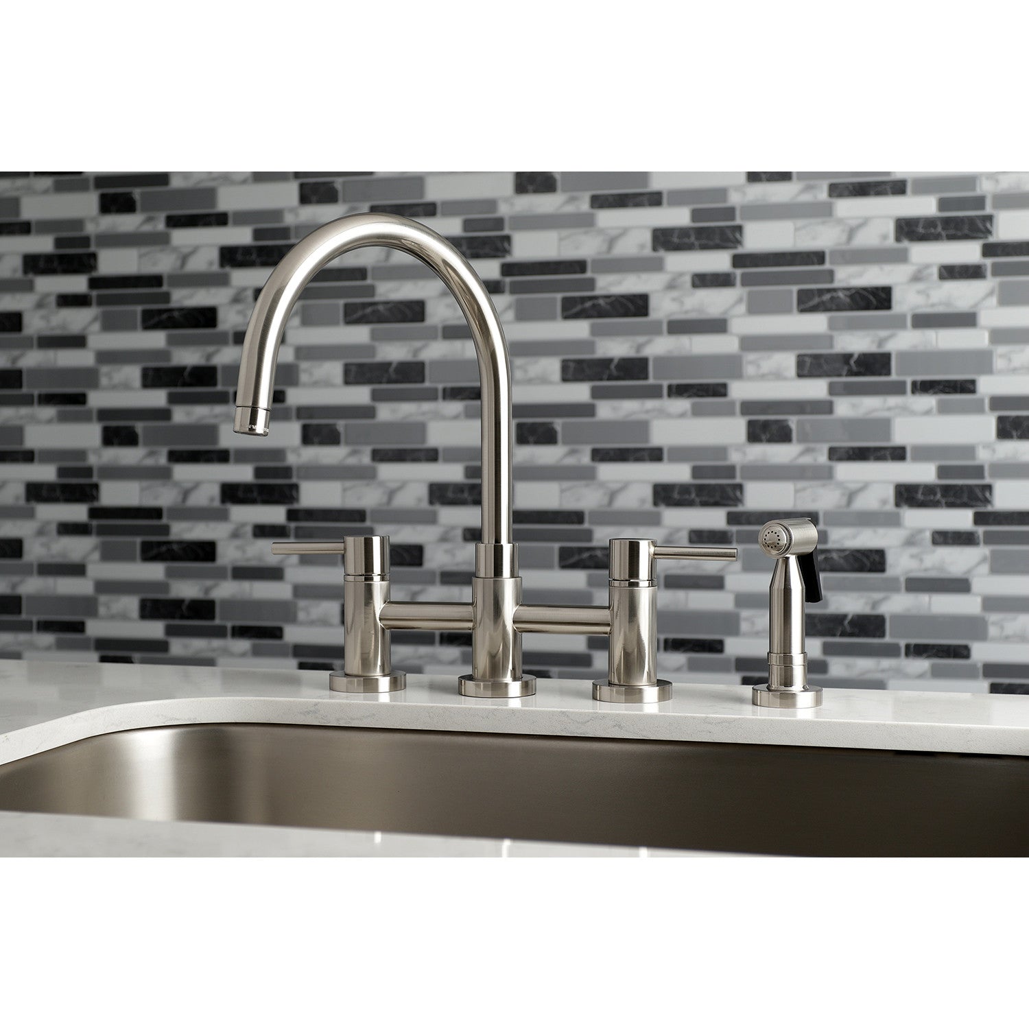 Concord KS8278DLBS Two-Handle 4-Hole Deck Mount Bridge Kitchen Faucet with Brass Sprayer, Brushed Nickel