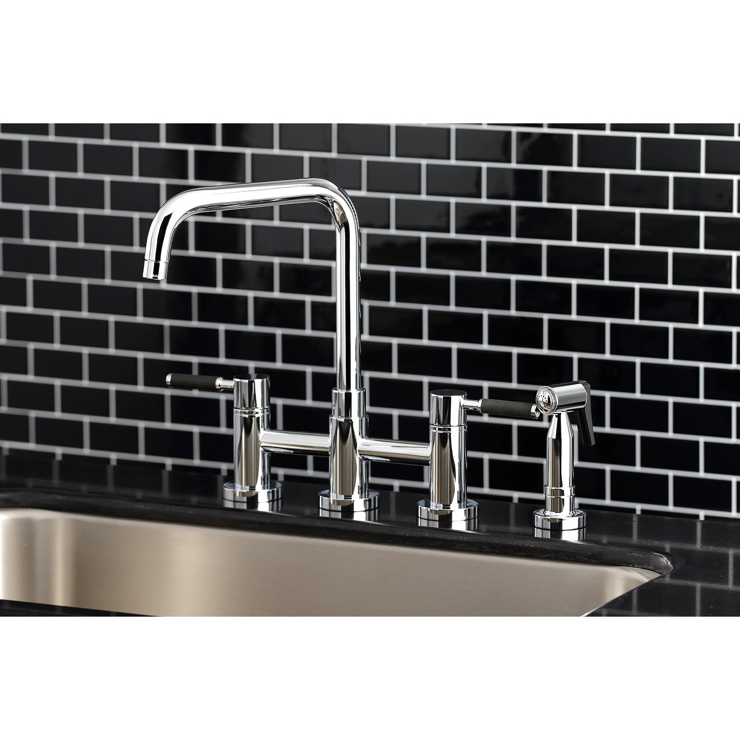 Kaiser KS8281DKLBS Two-Handle 4-Hole Deck Mount Bridge Kitchen Faucet with Brass Sprayer, Polished Chrome